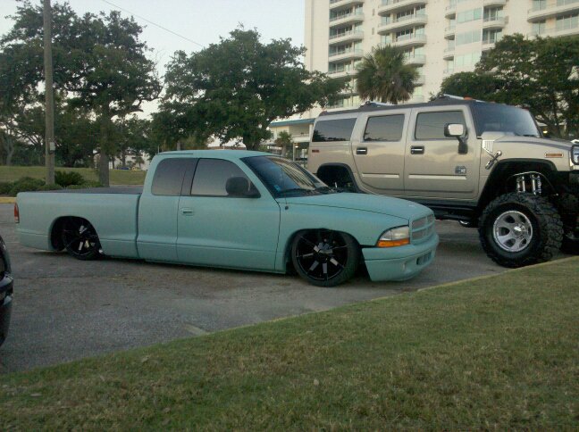 bagged in front with RE7 bags, 2" drop DJM lower control arms, rear is 4 linked with re8s on the upper bars and a jewed up narrowed axle