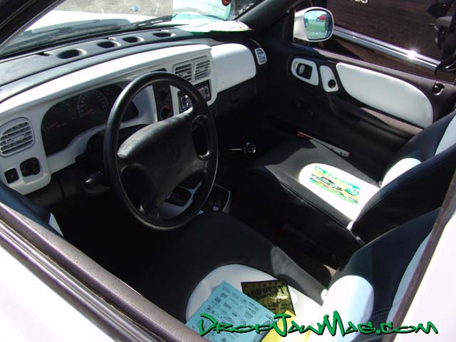 charcoal and white two tone leather seats, white paint on dash, console