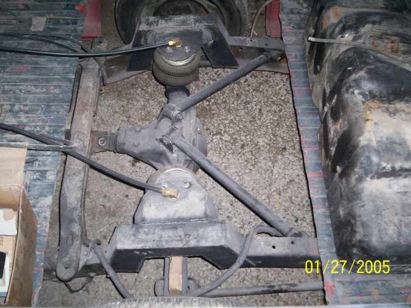suicidedoors.com front cups, 2500# contitechs in front, suicidedoors.com 4-link kit with suicidedoors.com upper and lower rear bag mounts and 2600# contitechs. engine driven compressor, 12 gal. tank with gc 250 1/2" fills and parker 3/8" dumps and 5/8" DOT line