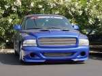 Painted Mercedes Bahama Blue. Stillen Front Bumper cover, sir michaels roll pan welded in with led lights, shaved taillights, handles, emblems, tailgate handle, antenna. Cervini Dual Ram Air Hood, Stull Billtet Grill with shell, Stull Lower Billet Inserts, Street Scene Smooth Cowl
