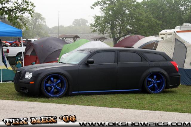 2TONE PAINT CANDY REDW/BASSBAOTFLAKES AND FLATBLACK,300C FRONT CLIP,SHAVED REAR WIPER,SHAVED DOOR HANDLES POWDER COATED GRILLE,SRT8 FRONT BUMPER AND 2"COWL HOOD, BLACKED OUT HEADLAMPS