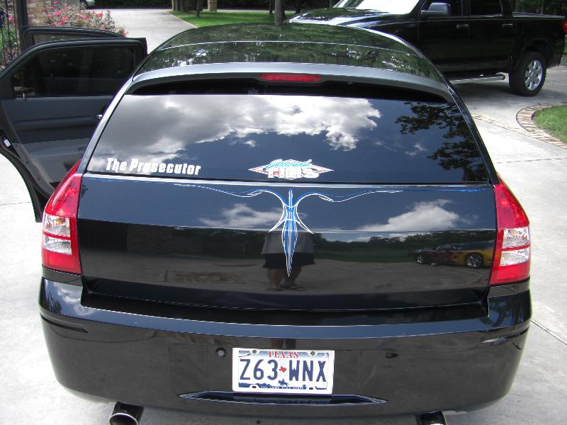 all trim removed, rear hatch shaved, custom old school pinstriping
