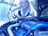 well its black, and somewhat scratched up from racing!, and got a dent in the fender from hitting a deer while going to see angela!,she also scratches the passengerside door with her belt...hmmm.... what else...those are mods! airodynamics baby!,