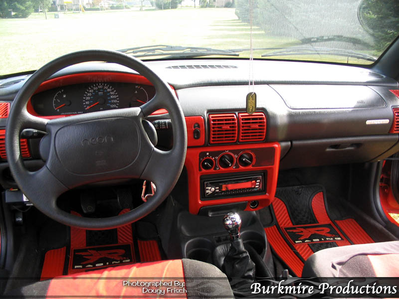 painted red interior pieces - red fabric on door panels - red/black seat covers - ractive shifter