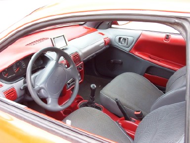 custom red and gray interior, red racing seats on the way,diamond plate floor mats, 5" Tach, and indiglo gauges(not hooked up yet)