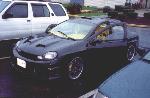 Jet Black (no more Orange Crush), Andy's autosport full combat kit molded, Wings west 7 piece extreme fender flare kit, custom ram air hood and roof scoop both molded, instagator II rear window spoiler, M3 mirrors, Door handles emblems, door moldings and antiena shaved, flip trunk conversion, apc black crome tails, tyc racoon eye diamond clear headlights, hyper turn signal conversion, euroeffects purple led underglow