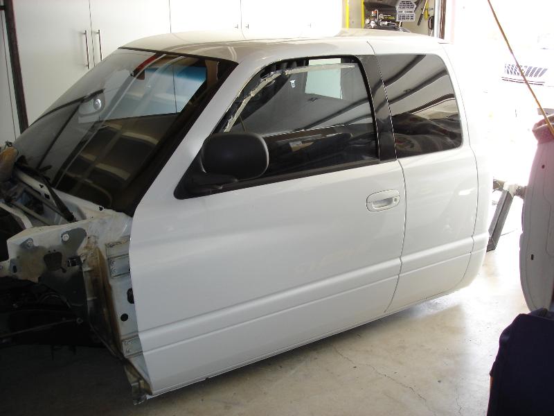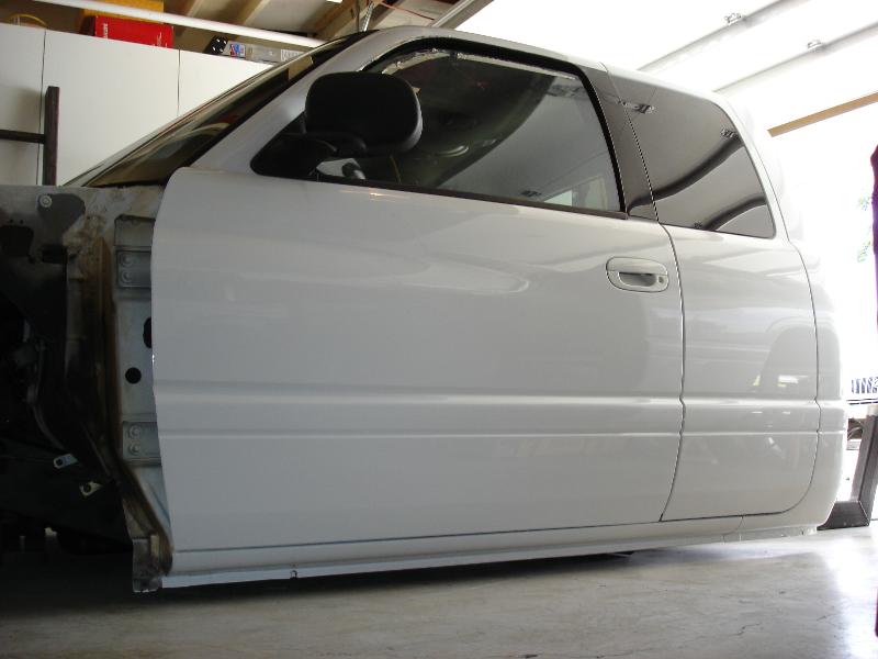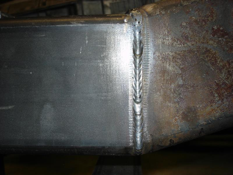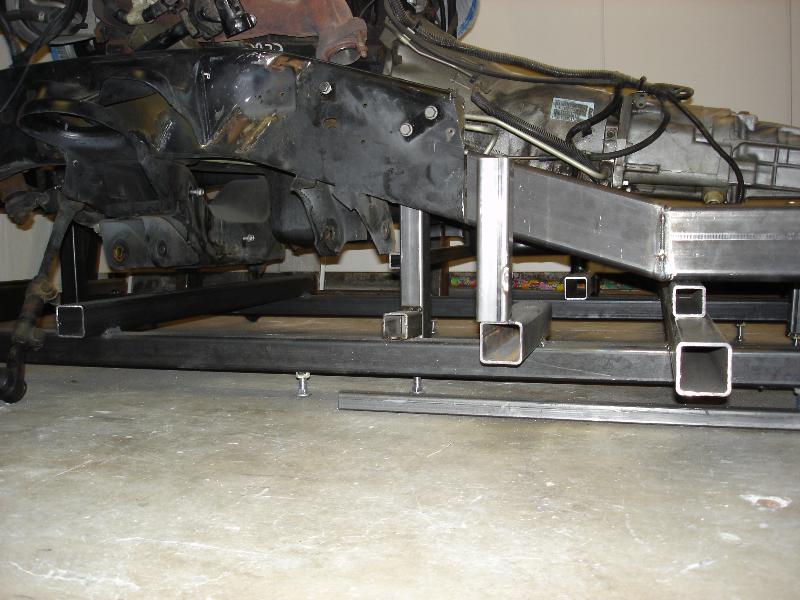 In process of 2 in stockfloor bd with SD tri-4link, z'd 1 inch to lay true frame, modified beltech tranny x member