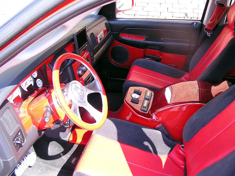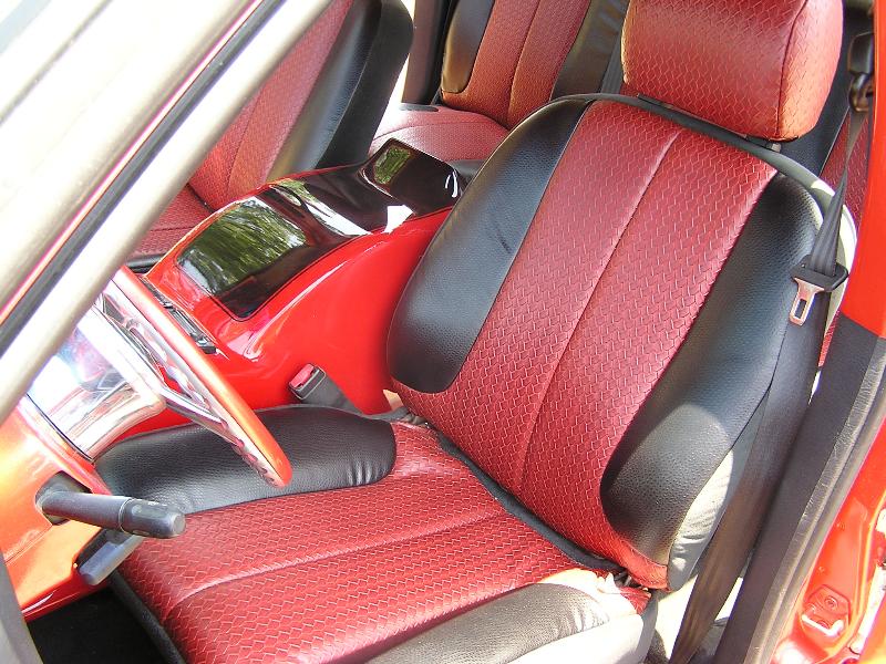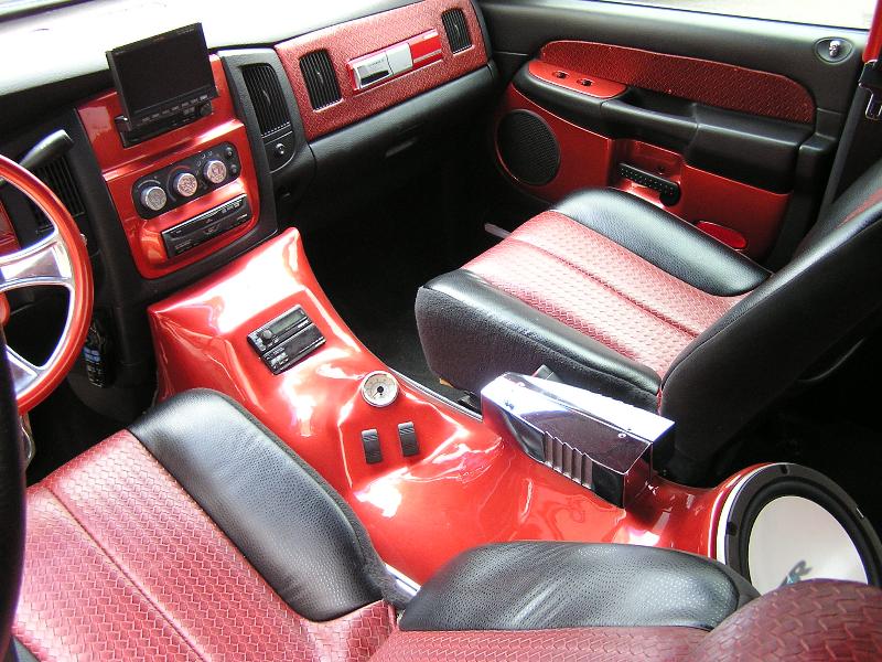 custom red and grey with painted pieces and numerous billet accessories with custom fiberglass console