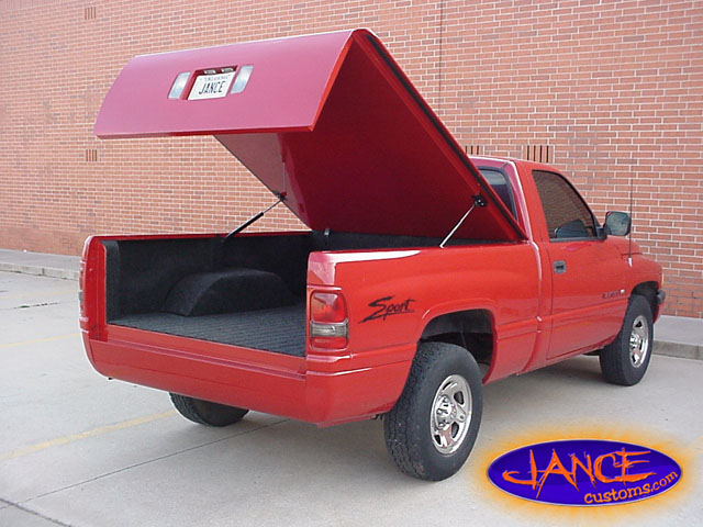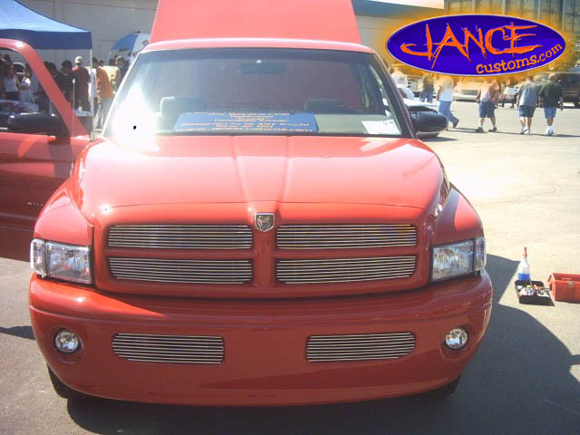 01 Dodge Ram Sport front end upgrade with billet inserts and Dodge Viper grille emblem, sport mirrors, billet antenna, euro taillights, Tonneau Gate Prototype (Tonneau/Tailgate combo, tag, hinged tag bracket, tag lights, C5 Corvette reverse lights, hidden handle under tag) rollpan