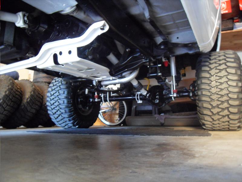 6 inch Tuff Country springs, skyjacker platnum shocks, procomp steering stablizer, superlift steering block, procomp 6% shims, custom shakles (front). 4 inch BDS blocks, procomp add-a-leafs, 9/16ths inch u-bolts, skyjacker 5000 shocks (rear). Energy Suspension bumpstops