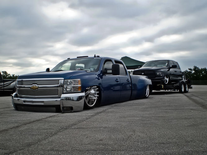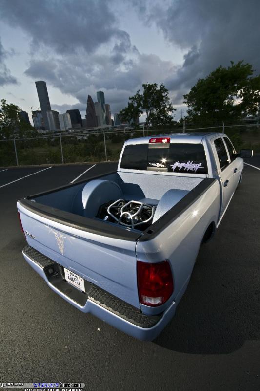 10K HID Kit, Billet Grill & Bumper Inserts, Color Matched Rhino Liner, Color Matched Bumpers & Grill, Shaved; Fuel Door, Sat. Antenna on Roof, Antenna on Fender, Tailgate handle & Rear Emblem, & Tidewater Blue Metallic Paint, '10 HD Clip