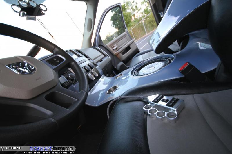 Billet Brass Knuckles Rearview Mirror, Color Matched Pieces, Katzkins Black Leather & Gray Suede Insert Seats