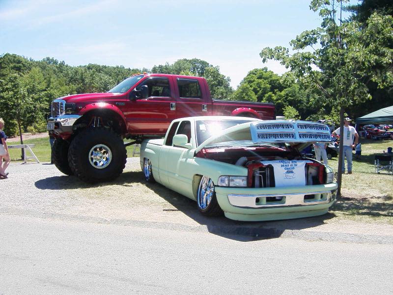 Primmed with HOC, polished flame grill, shaved doors,antenna,stake holes , tailgate, 3rd break light,and rain channels. "Can Do Customs" roll pan, tail light fillers and 2" frenched tribal tail lights. Fiberglass Ram Air hood