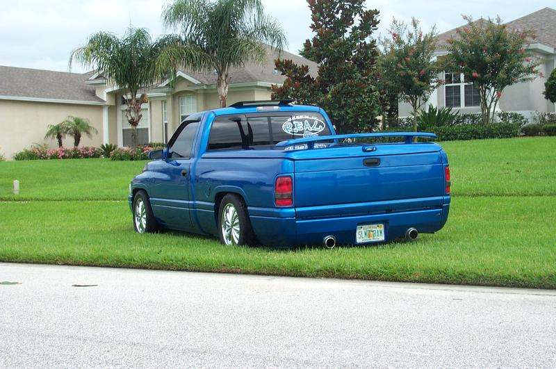 Metallic Blue Paint,remote start,power moon roof,ARE fiberglass lid w/spoiler,Keystone hood,street sceene power/signal mirrors,speed grille and bumper inserts,5% window tint,clear corners&tail lights,Lund roll pan w/exhaust tips cut through,blue neons