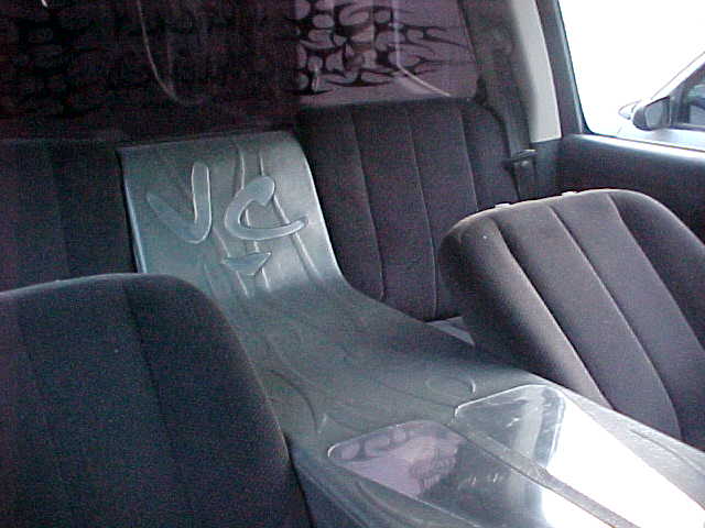 BILLET FLAMMED LIGHTER,BILLET DOOR LOCKS, TRENZ 3D FLAMMED BILLET REAR VIEW MIRROR, TRENZ 3D FLAMMED BILLET PEDALS,CUSTOM BILLET INSERTS IN THE DOORS THAT READ VERTICALLY CHALLENGED AND AC KNOBS THAT HAVE VC ETCHED IN THEM ALL BY WWW.BILLETCREATIONS.COM, CUSTON HEAD LINER IN VINYL WITH RAISED FLAME GRAPHICS CUSTOM CENTER CONSOLE FROM DASH TO REAR GLASS ,WITH 4 FOSGATE 12'S AND RAISED FLAMES WITH BILLET INSERTS ,SPLIT REAR BENCH SEAT TO MAKE 2 BUCKETS,WILL UPDATE PICS WHEN I GET TIME
