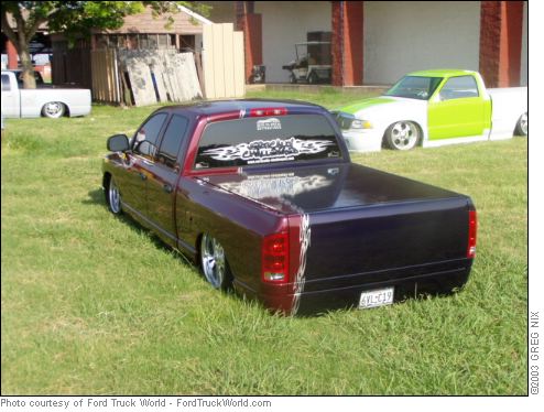 SHAVED EMBLEMS, SHAVED SIDE MOLDING, SHAVED TAILGATE HANDLE,SHAVED CAB EMBLEM, MOLDED IN ROLL PAN, BILLET GRILL, BILLET LICENSE PLATE FRAME, BILLET ANTENNA, 1% TINT VERY DARK AND VERY ILLEGAL,HID FOG LIGHTS VERY COOL WHEN THEY ARE 3 INCHES OFF THE GROUND DRIVING DOWN THE ROAD LOL, PAINTED THE TRUCK 2 COLORS MERCEDES VIOLET OFF CENTER A LITTLE ON THE PASSENGER SIDE AND BURGANDY STILL ON THE DRIVERS SIDE WITH SILVER FLAMES DOWN THE WHOLE TRUCK TO DEVIDE THE 2 COLORS, FLUSH MOUNT BED COVER ,FULL BED KIT IN VINYL WITH GRAPHICS BY MOONLIGHT CUSTOMS WILL UPDATE PICS SOON