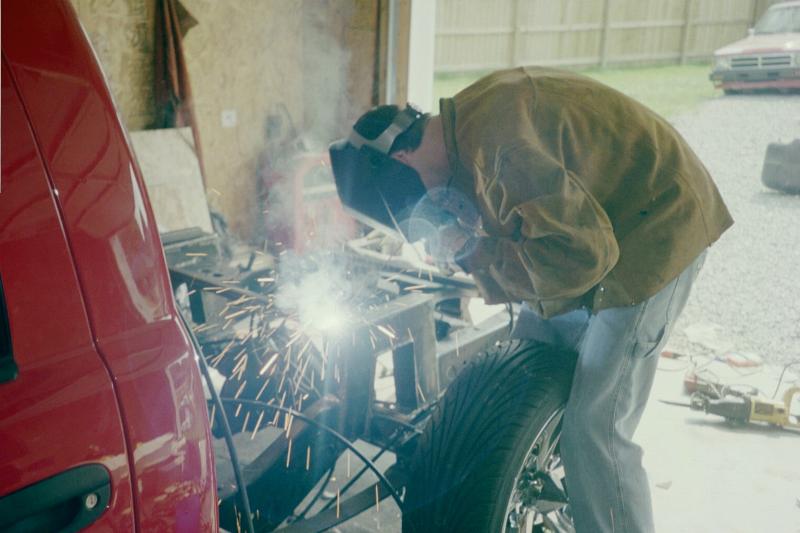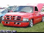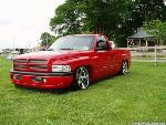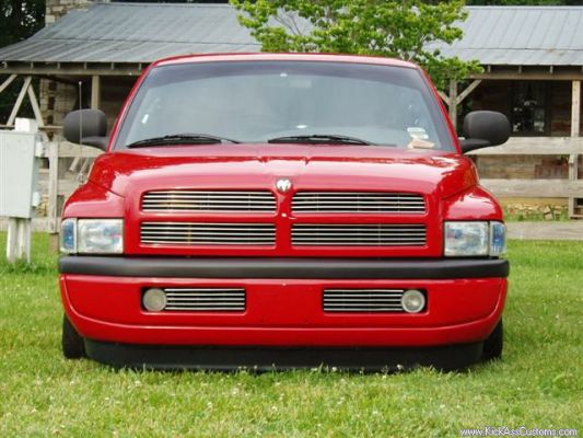 Flame red paint, patriot bed cover, euros, billet grill, fiberglass rollpan