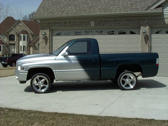 Silver Pearl Metallic/ Emerald Green Metallic Paint, Painted door handles, Shaved Tailgate, Ram Sport Headlights, Crystal Clear corners,