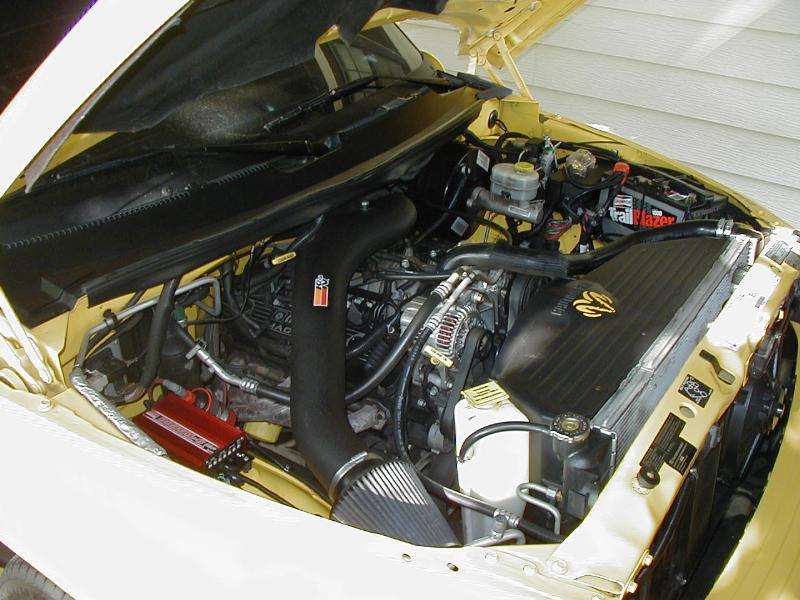 A 5.9L 360c.i V8. With a Mopar performance computer,K&N Generation 2 system, MSD digital 6 ignition,Mopar Performance ported and polished throttle body, Edelbrock headers,and Flowmaster exhaust