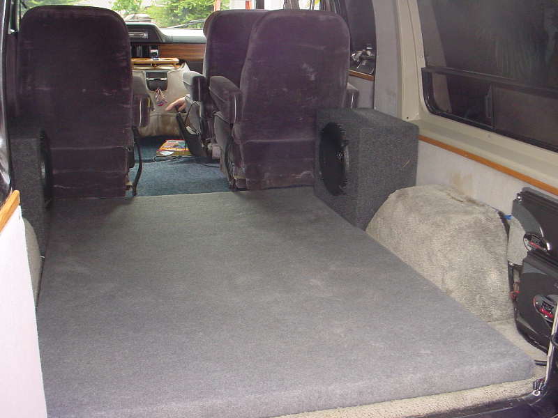 Sony X plode deck with Pyle DVD player and screen custom mounted above the rearview mirror - 6 Pioneer 6x9's custom installed in each door - 2 12 inch Kicker Comps in custom boxes behind the rear seats - 2 MTX Thunder amps - one for the 6x9's and one for the subs -- This system does its job of creating a rawkus in public
