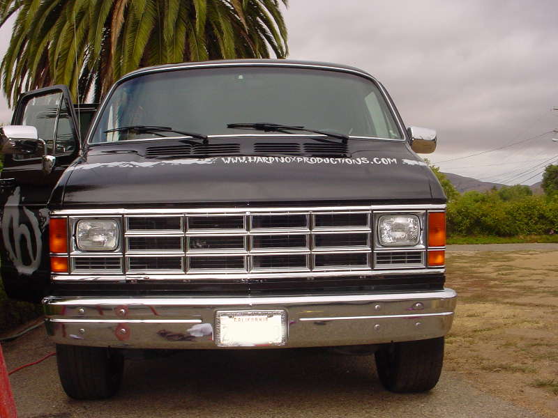 House of Kolor Paint custom airbrushing of the HARDNOX logo, with a black base on the van -- chrome here and there
