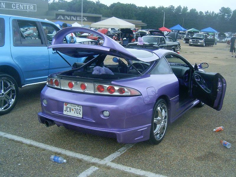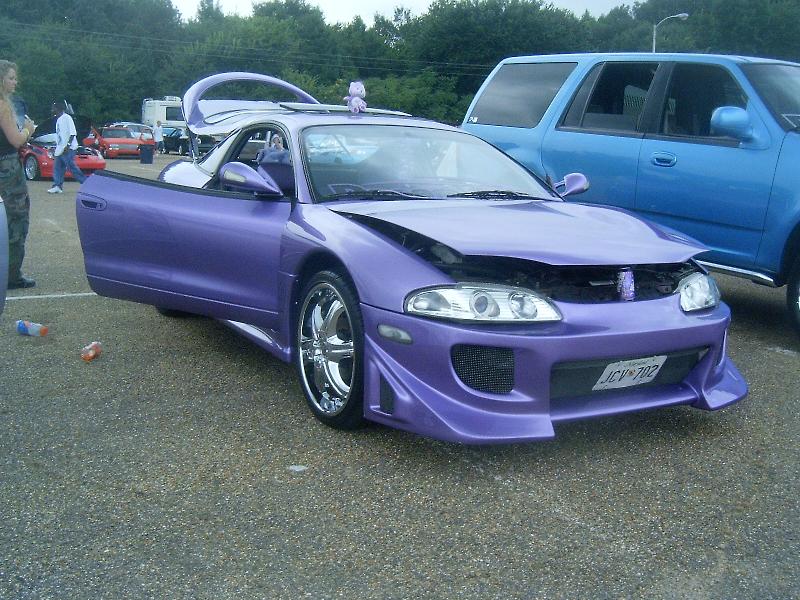 starlight purple paint, full blitz body kit, eclipse rear end conversion w/euros, m3 mirrors, halo projector headlights, shaved antenna, hood squirters, webasto sunroof