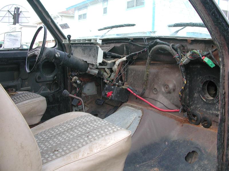 Empty, just two seats and a steering wheel, makes for easy cleanin after its covered in mud.