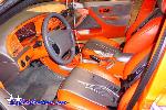 orange and silver leather seats, dyed dashboard