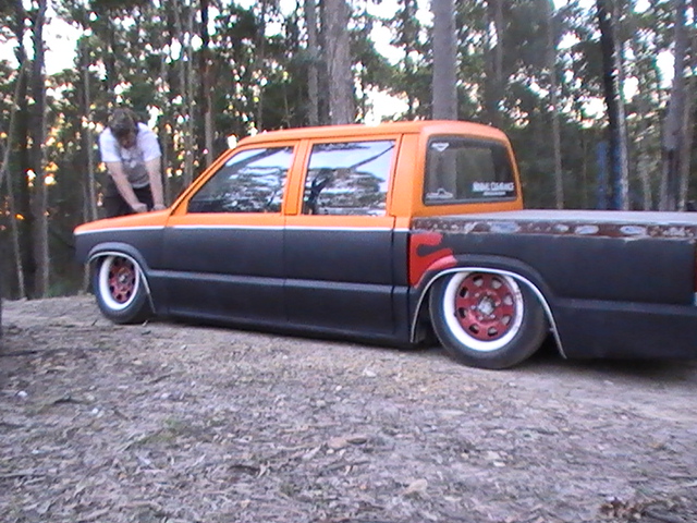 lay it flat on 20s stock arms and stock spindles, rear clip, bodydrop, v8, suicide doors, full interior, respray
