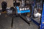 front is a 86 s10 clip with 2 inch drop spindles and factory steering from van useing a custom push and pull system with heim joints designed by cookie which turns good and locks out side to side better than a s10, the back is a 93 mark 8 clip ids,which was no fun putting it in but works great,it gets 10 inches of lift in front and 8.5 in back