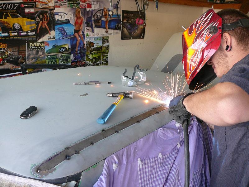 Shaved handels, Custom fitted bodykit, clear corners, green(now grey) primer. frenched R32 skyline Taillights. started 04' silverado headlight conversion.