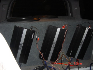 Kenwood Excelon 794 CD, Sundown audio sax-100.4 on 48 Powerbass 4xl's, 4 crescendo audio tweerers, 2 FI BL 18's loaded run off 2 strapped sundown audio saz-1500d's, all 1/0 gauge wire, powermaster d3100 in back