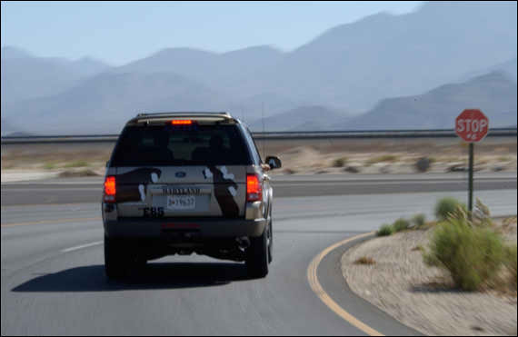 Desert Camo pattern. Front active air dam, deployed at speeds over 40 mph and Rear spoiler. Reduction in Coeifficient of Drag by 4.5%. Lexan windows for additional weight reduction.