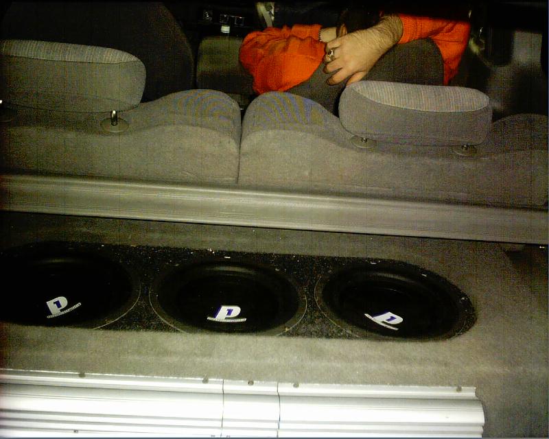 representing the old school pioneer cd, crossfire indash crossover, mb quart 6 1/2 componets in front with mb quart 5x7 in rear, new 13.5 jl audio w1 v2 series in slot ported box.......knocks balls, 1 crossfire tek 150.2 600 watt amp for sub and a crossfire tek 75.2 300 watt 2 channel amp for high end. all stinger wires and rca s.