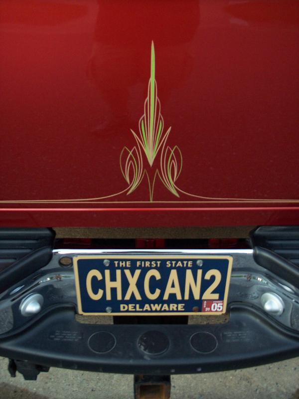 Shaved Emblems, Color matched handles, mirrors, and wiper cowl, Billet grill, tint, and Simple Old skool Pin Striping