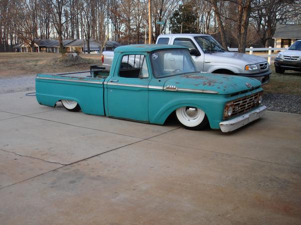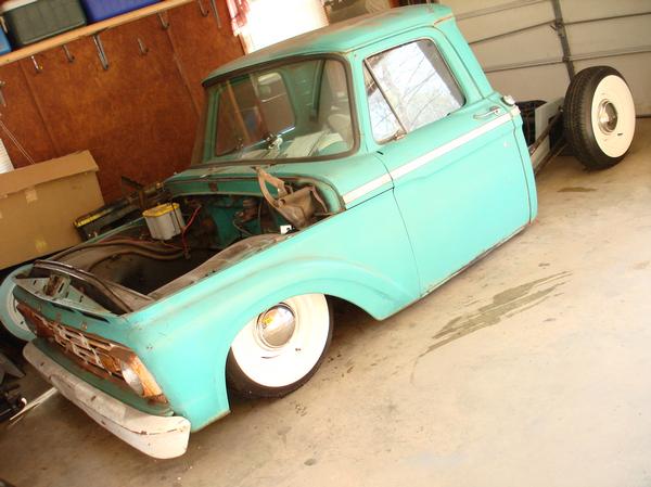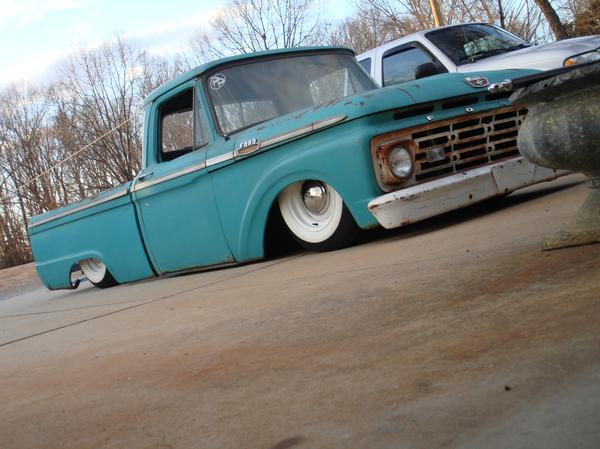 Full Air ride.Full boxed frame from cab back, Fat man Fab Mustang 2 front clip, tubular a arms, drop spindles, Suicide doors parallel 4-link