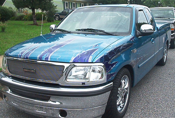 Tailgate Graphics, Custom airbrushed Graphics, diamond headlights, clear corners, Euro tails, acetoned emblems, polished fuel door