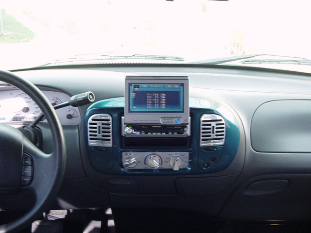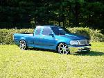lightning headlights, cervinis cowl hood, euro clear corners, acetoned emblems, roll pan, shaved tailgate handel and ford embelem and f150 embelem on tailgate, all clear tail lights, chrome anteena base, and billet anteena, trenz billet grill, street scene mirrors, chrome lower valance with driving lights, smooth and painted upper bumper pad smooth bad caps and tailgate cap lightning 3ed brake light bed rug HID headlights