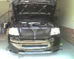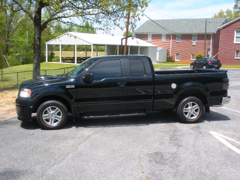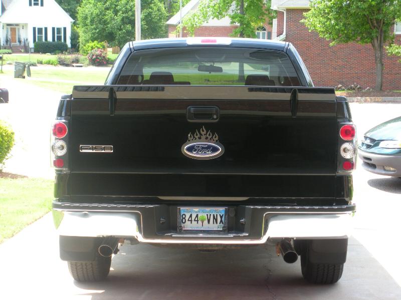 Roush chin spoiler, Roush hood scoop, Roush Tailgate spoiler, Black Nerf Bars, Husky molded mud flaps, 9" stubby antenna with flames etched in, Stainless flamed grill and stainless flames on tailgate. Stainless fuel door. Under truck neons (Blue)Black Altezza Tail lights. Full Tinted windows. Blue H.I.D head lamps, Bosch pivotless wiper blades