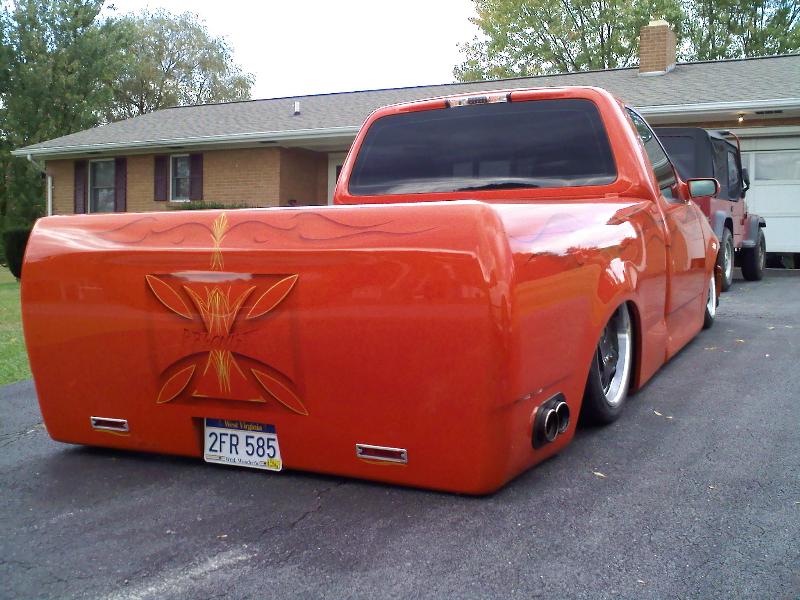 custon hok orange candy with black flames and detailed airbrushed bedwork
