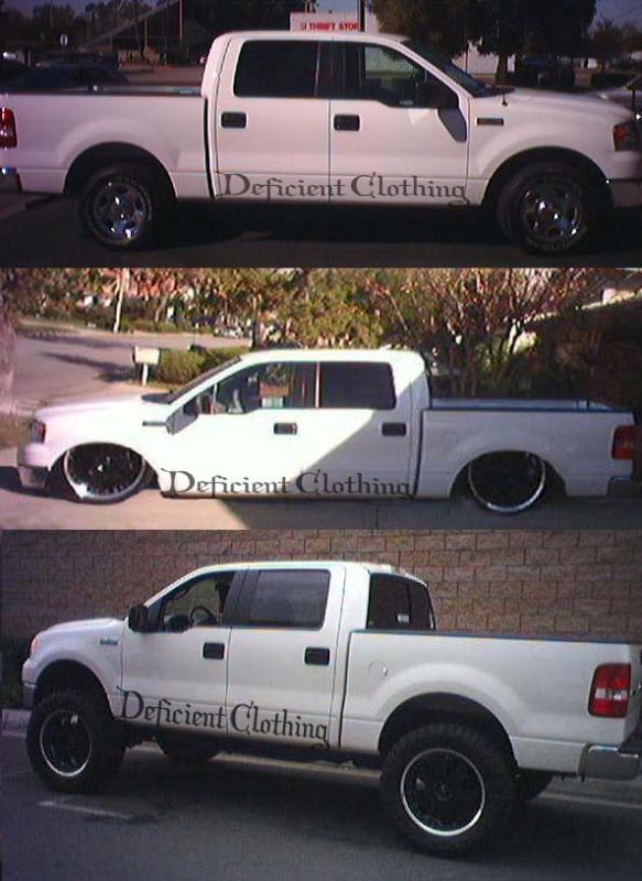 Two JL Audio 10" subs under back seat in custom built box powered by a P.Tech 800w amp sounded by a 7" touch screen in-dash with DVD, satallite radio, and ipod port all in unit also wired in to two 7" headrest moniters.