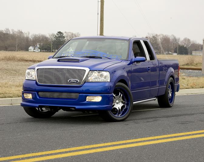 painted daytona blue, shaved, ss cowl,mirrors,front bumper, trenz billet grilles, westin sport tubes, projector headlights, roush hoodscoop