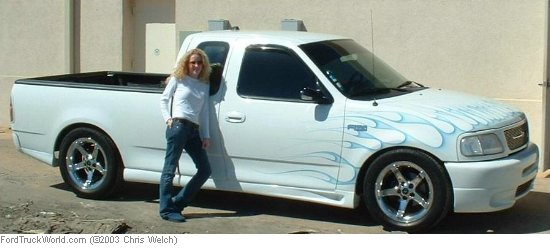 Custom Paint- Ford Oxford White w/ Silver Pearl then Blue Pearl Flames, Shaved Tailgate, Acetoned Emblems, Etc...