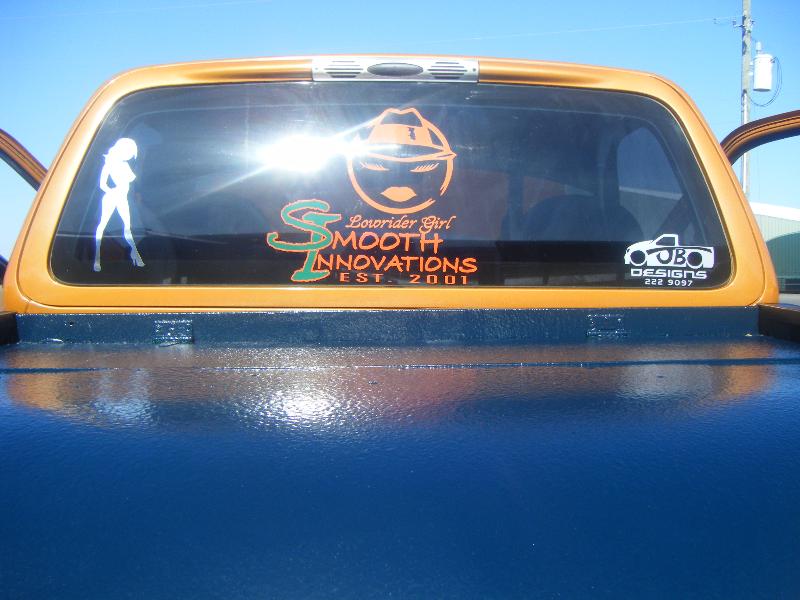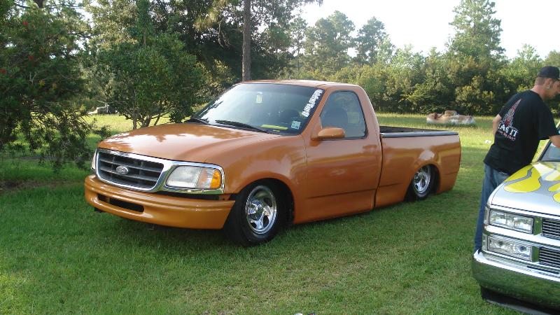 '99 bumper and grill update, shaved, bright orage with green pearl, 20' rims, gas tank box and notch cover sprayed with green bed liner, roll pan, custom tint