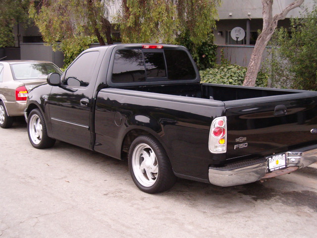 Black paint. Clear corners with the blue bulbs. Stock tail lights(way better than mexi). A few dents here and there but oh well.