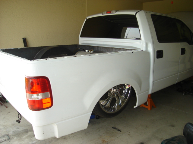 stock white for now 4.25" stock floor body dropped, Custom suicide split tailgate.