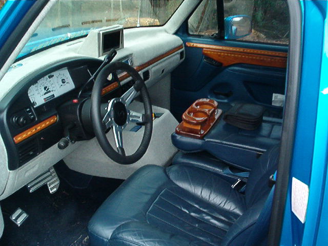 tweeded,leather bucket seats,billet kick plates,and custom steering wheel
