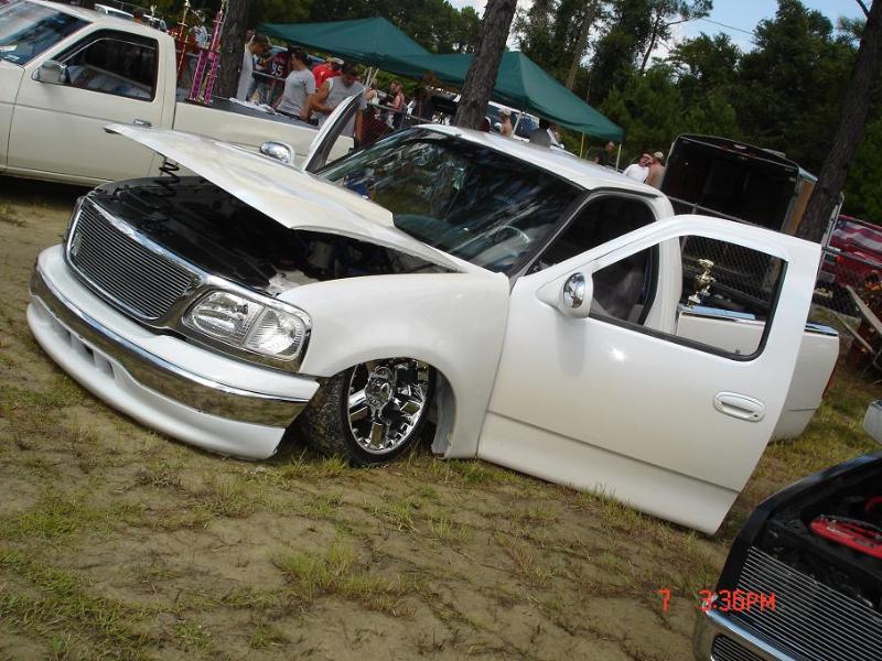 shaved emblems, rollpan, tailgate, clear slide markers, sylvania xenarc HID headlights, reflexxion 2" steel cowl hood, stull billets, harley davidson valance, gaylords bedcover, list goes on...