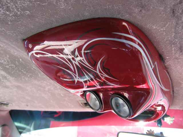 stockfloored, fully shaved, euro tail lights coated with a dark red candy, clear coners clear headlights, and billet grill