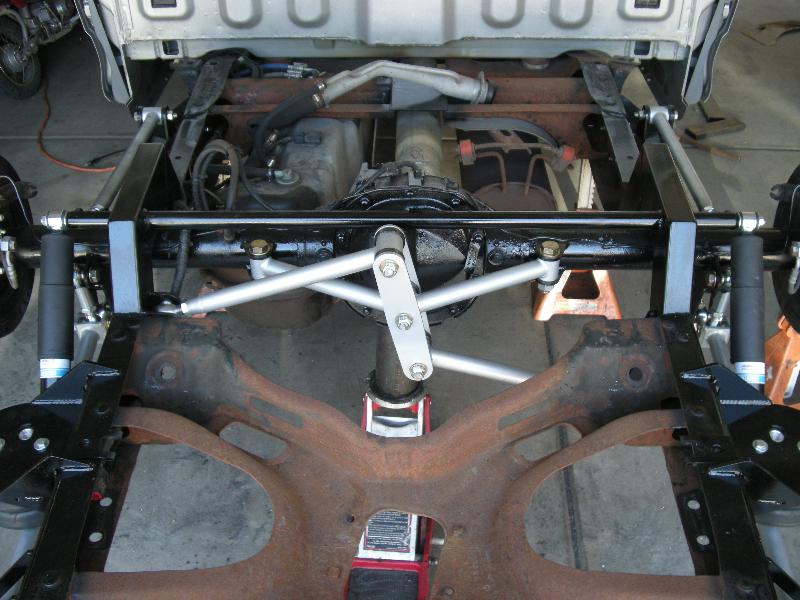 MMW front suspension kit. Upper and lower control arms with raised upper control arm mounts and new bag brackets. Rear end is a custom CAD designed parallel 4 link with a watts link and rear leverage bars for the bags and shocks.